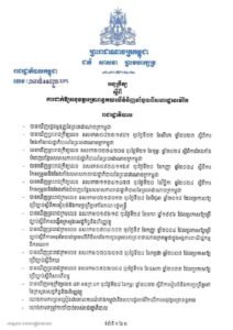 Article 5: The Minister in charge of the Council of Ministers, the Minister of Economy and Finance, and the ministers and heads of all relevant ministries and institutions shall be responsible for the implementation of this sub-decree in accordance with their respective duties from the date of signing.